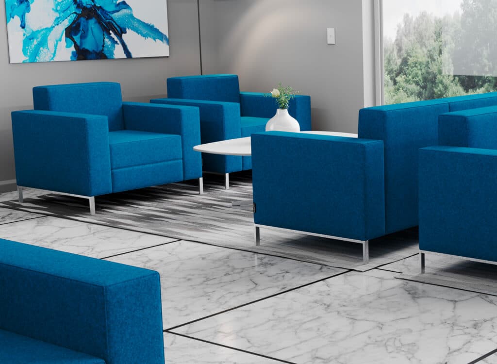 Aleta delivers great seating choices for a variety of applications. With a chic cubist design and polished aluminum feet, Aleta is a long-lasting solution for high-traffic areas and touchdown spaces.