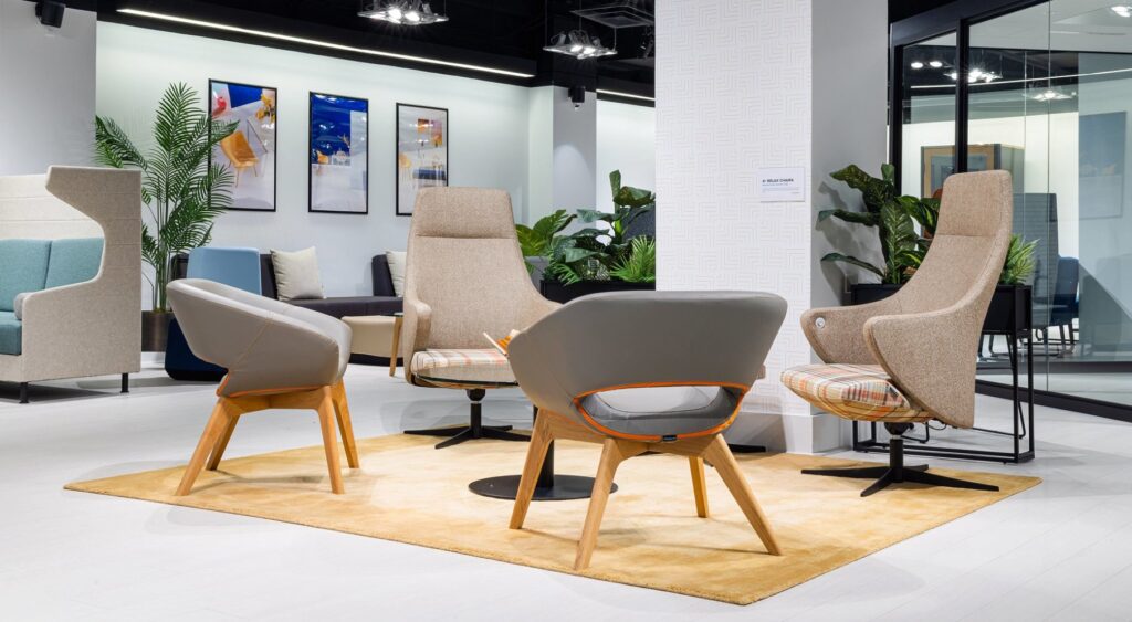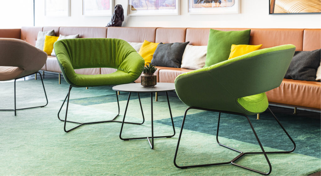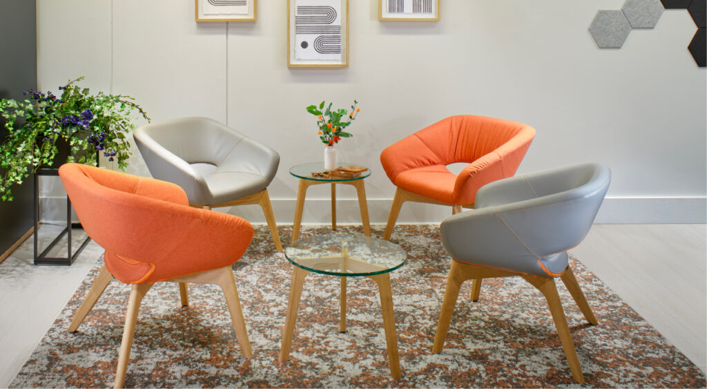The Averio lounge chair’s nest-like design is extremely comfortable and allows for inner seat and outer back areas to be
