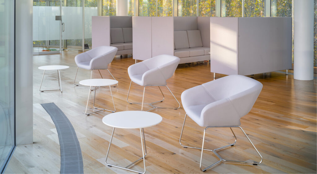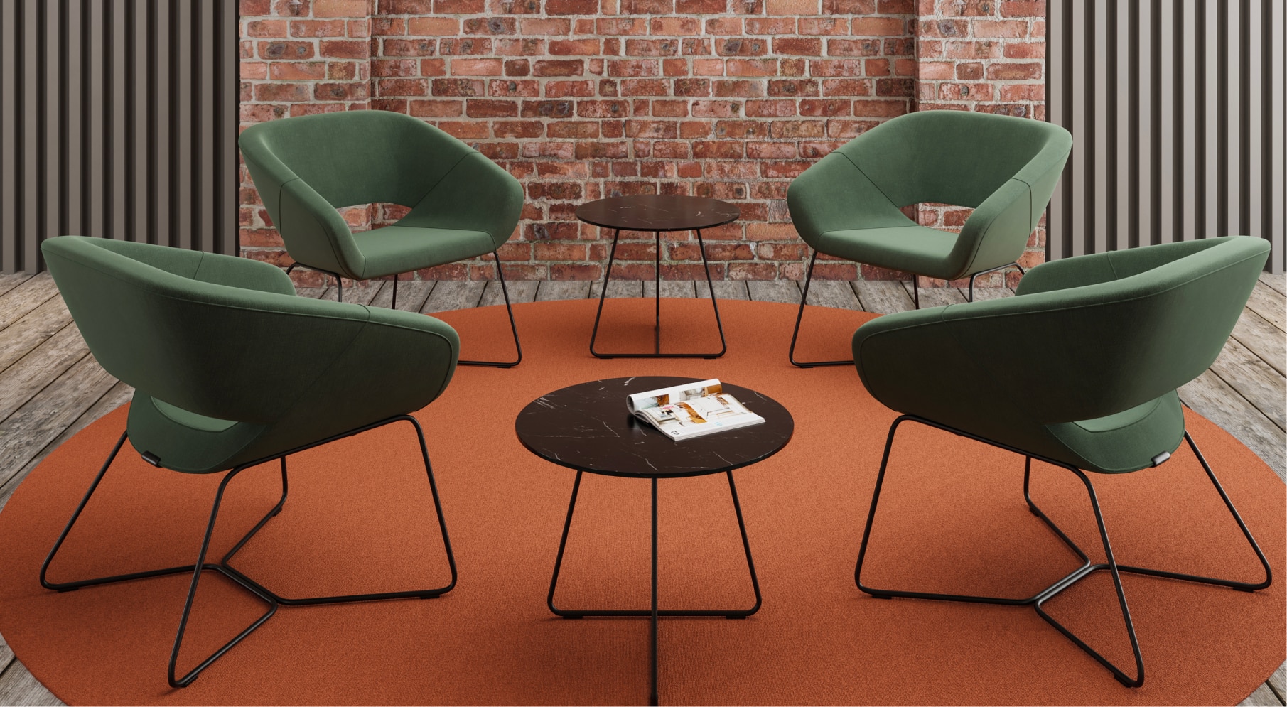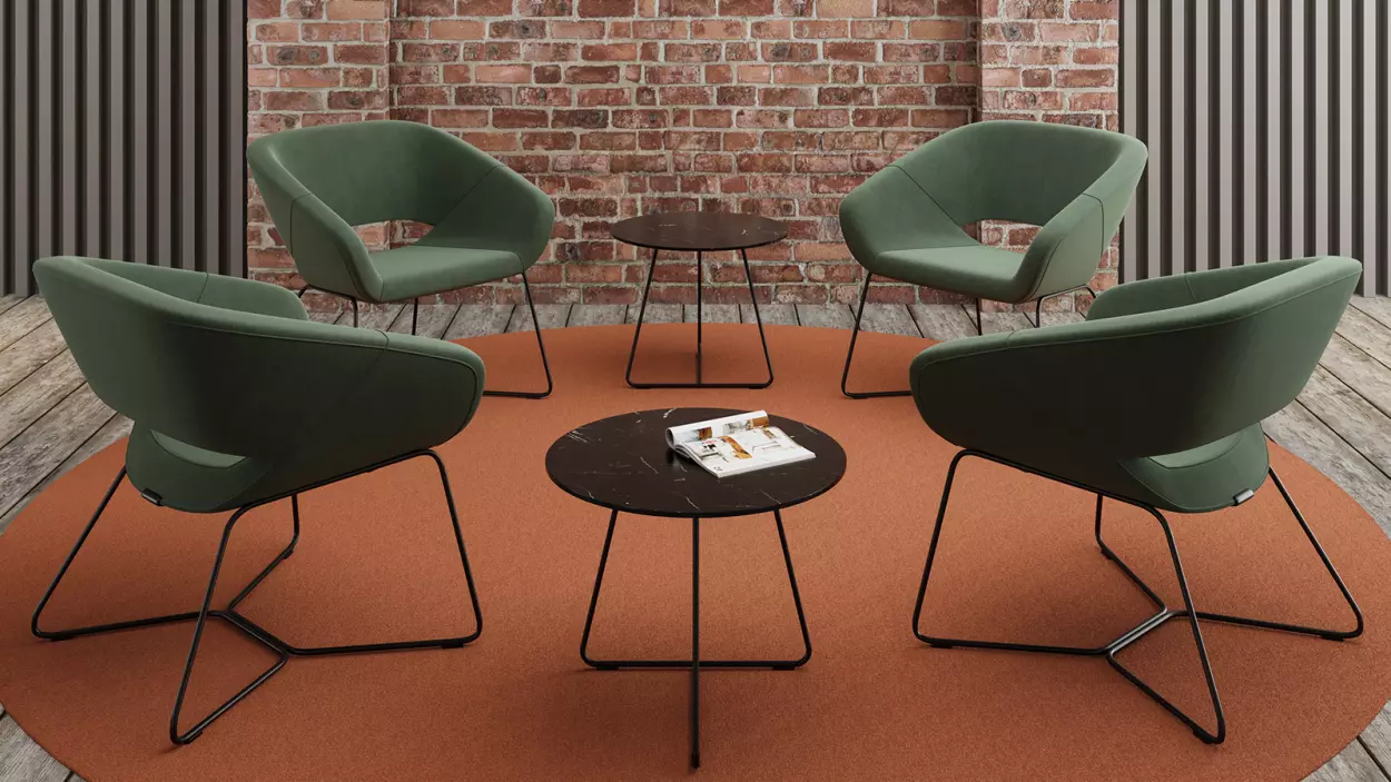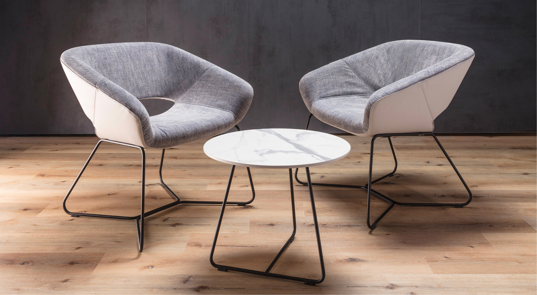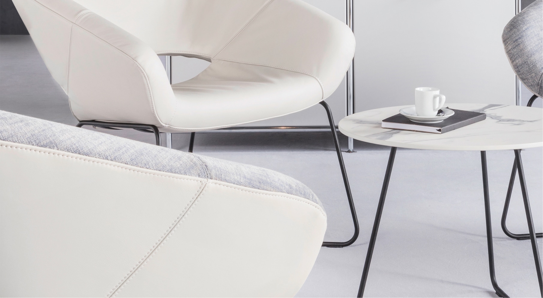 The sophisticated, modern Averio lounge chair and companion table provide a versatile solution for a wide range of interiors, including casual lounge areas, reception spaces, and prestigious executive offices.
