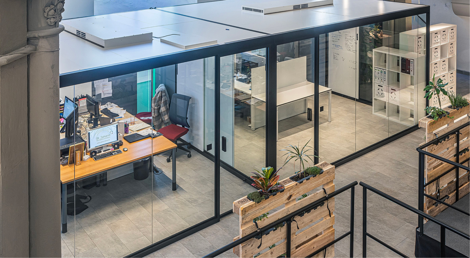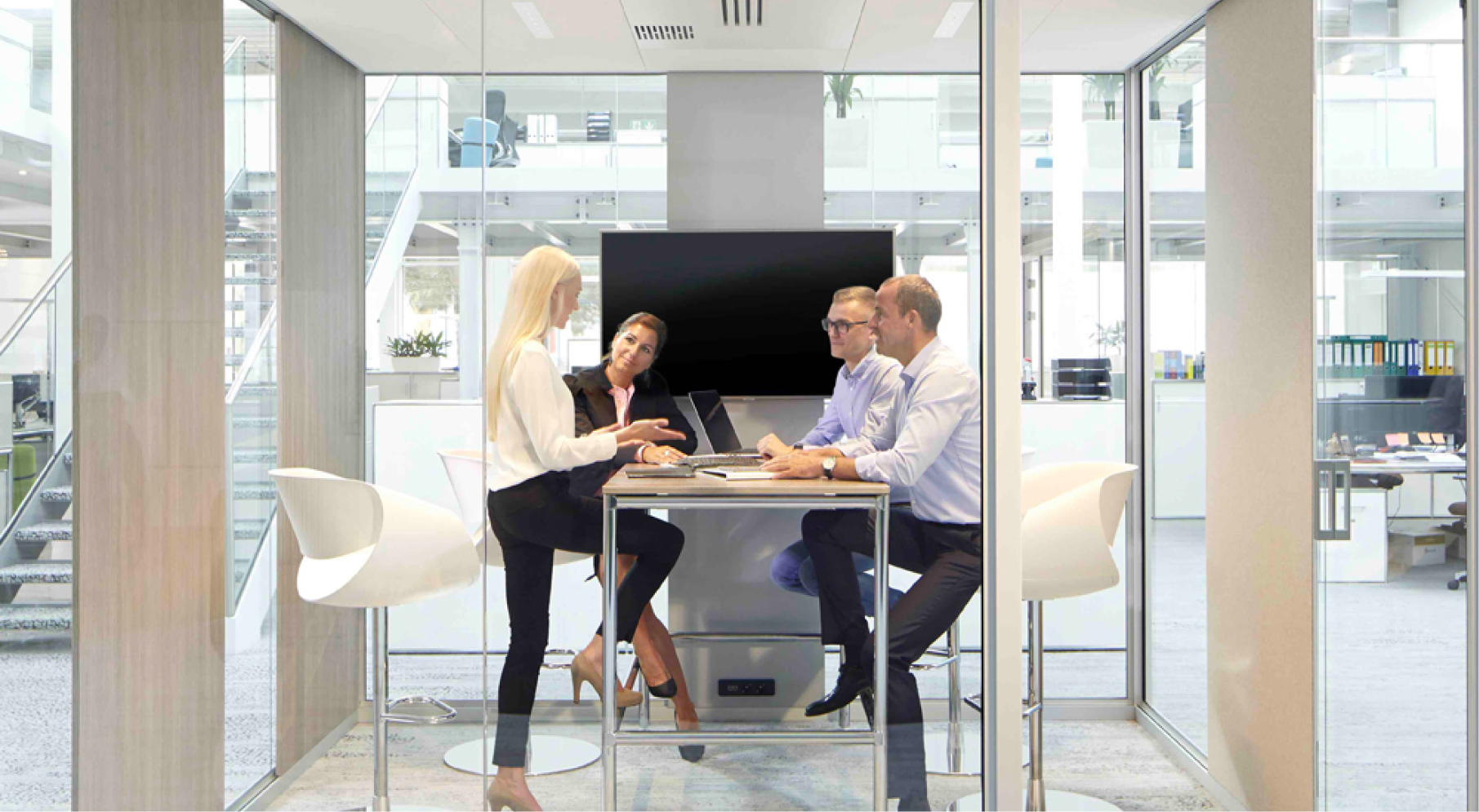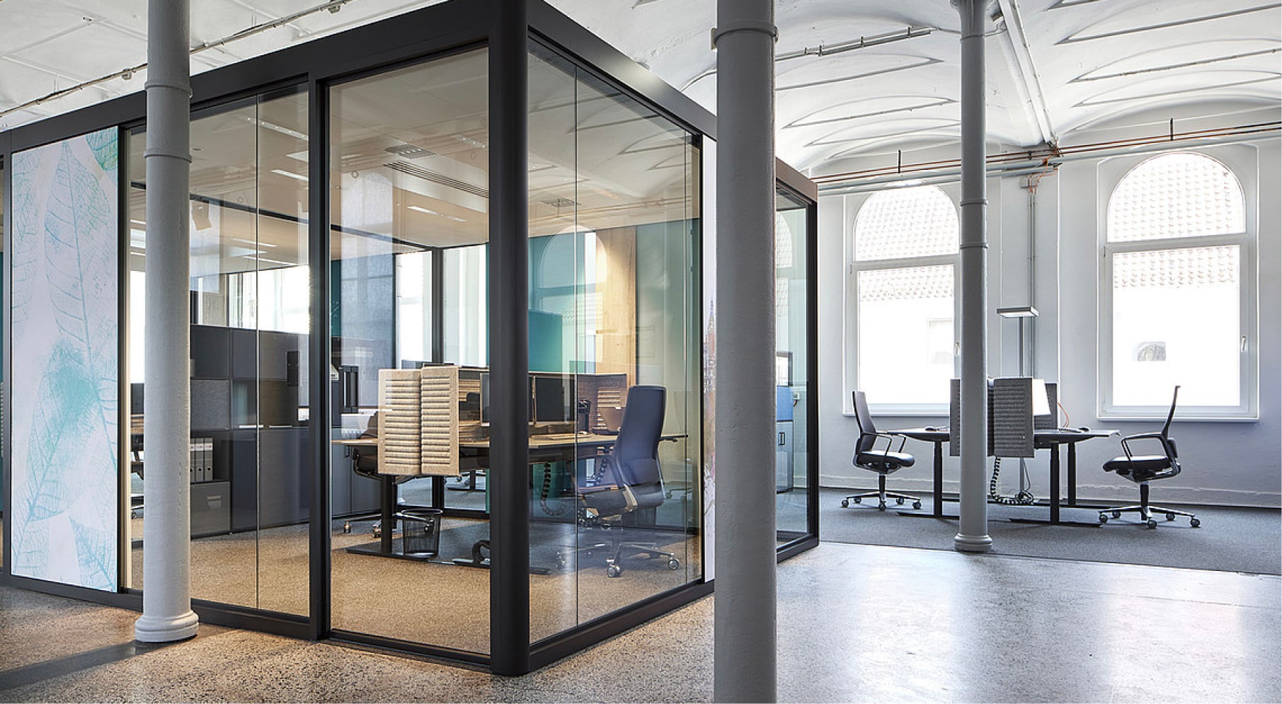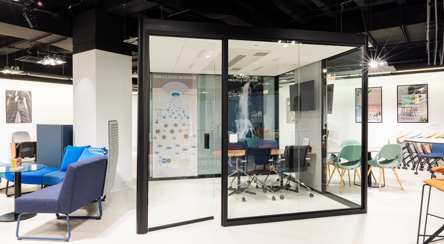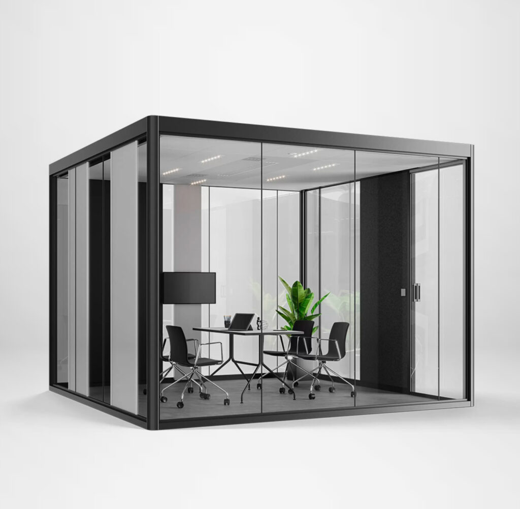 Designed with acoustic privacy in mind, Bosse Room-in-Rooms measure noise reductions of 39 decibels in sound reduction tests. These sleek models are powered by an easy plug-and-play system. Room-in-Rooms can be moved to different locations as needed, and then re-assembled for use the same day.