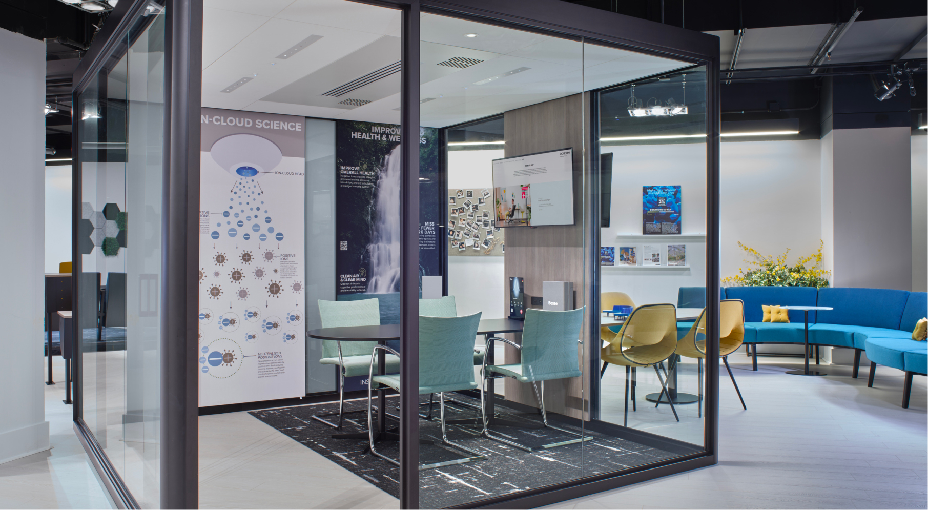 The Bosse Ion Cloud simulates nature by introducing negative ions into its enclosed environments. The Ion Cloud helps to minimize the risk of infection from airborne pathogens and improve air quality to support general health, mental wellbeing, and cognitive performance.