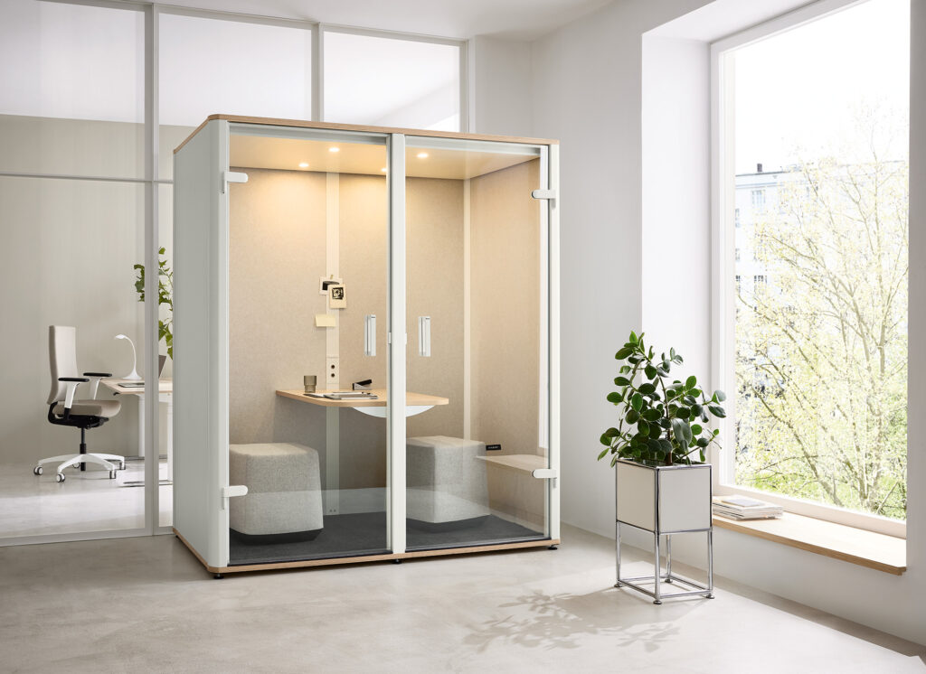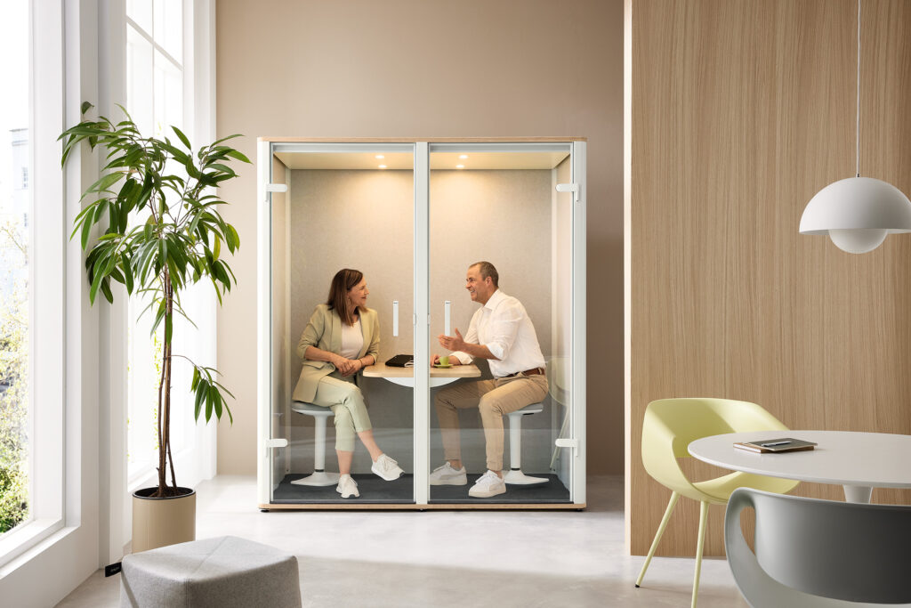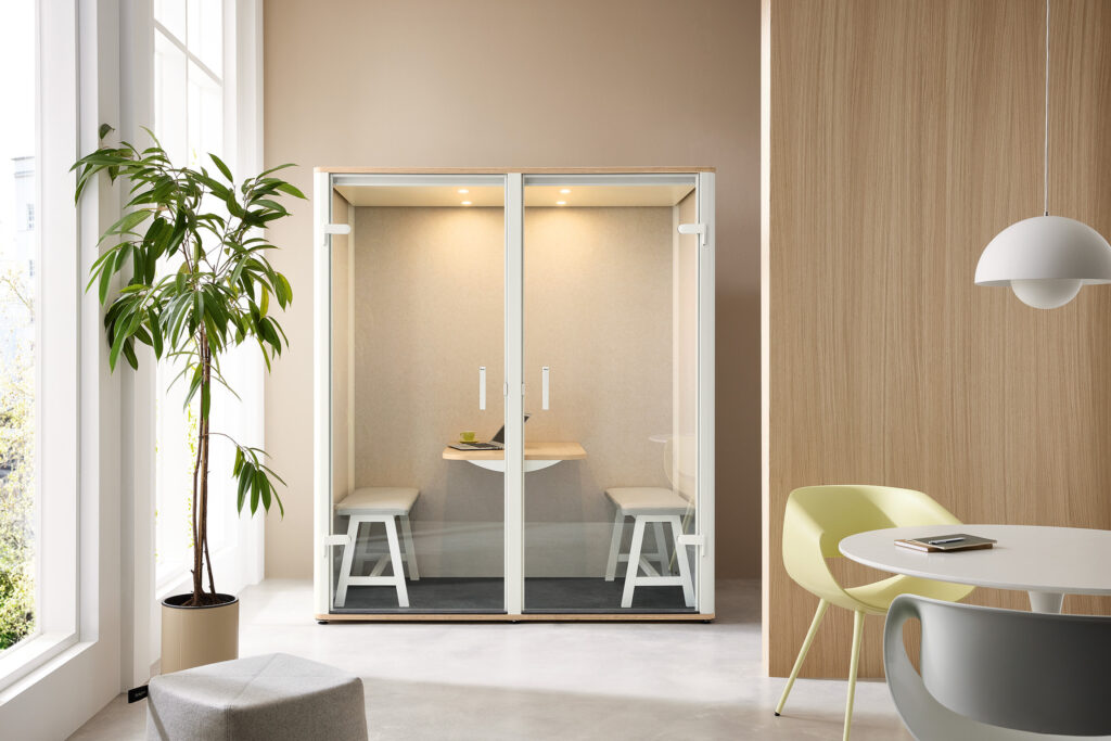 Bosselino Duo is the space for big ideas and clear thoughts. Whether it’s for confidential discussions, intensive teamwork, or creative thinking, the Bosselino Duo is the ideal meeting box for focused working at the heart of the office.