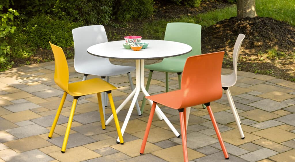 The Cempa line offers attractive, flexible solutions to meet the needs of today’s corporate and institutional markets. Outdoor-rated aluminum legs, along with a weather-resistant top, make the Cempa Alfresco Table perfect for a lively patio, fresh outdoor break area, colorful courtyard meeting space, or other workplace, hospitality, or educational setting.