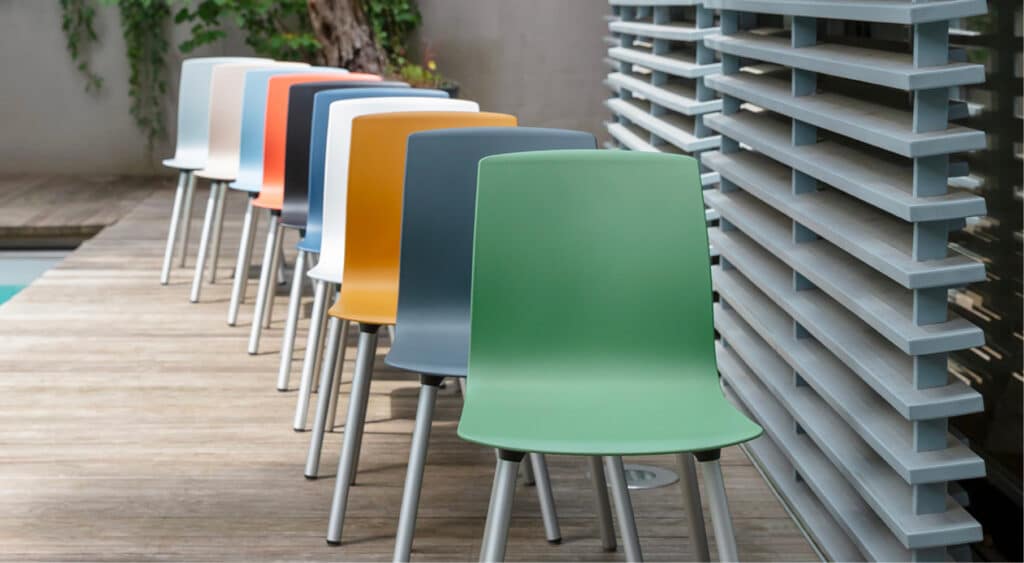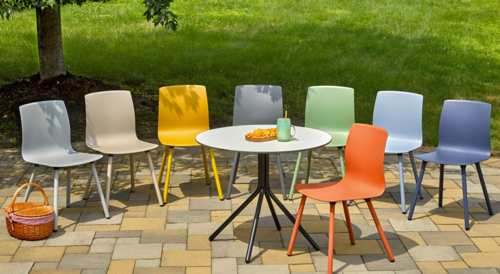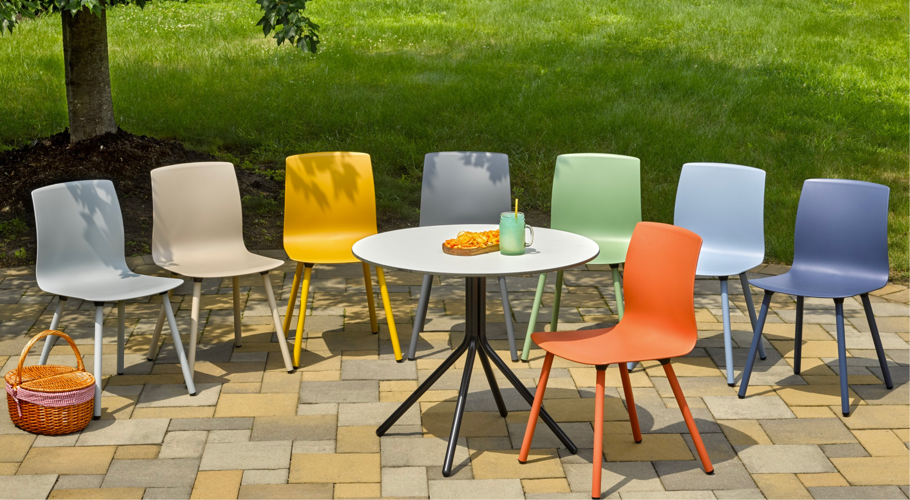 Cempa is also available in a nesting model Alfresco (outdoor), various bases or legs, as a chair or stool—there are actually over 400 different variations on the Cempa chair!