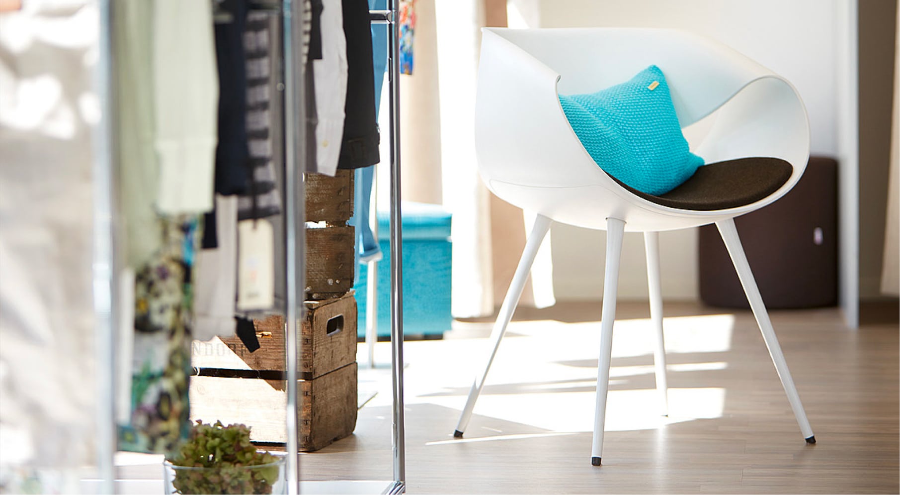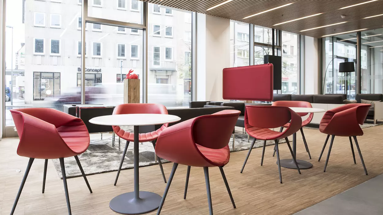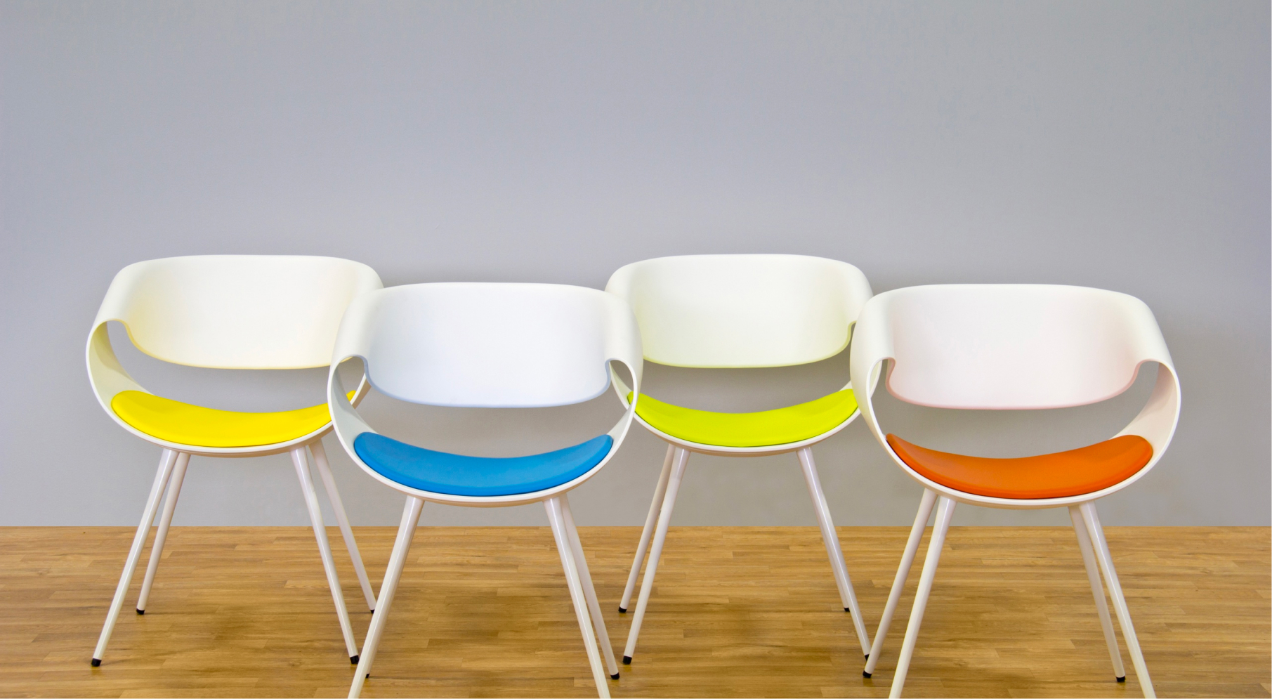 The fully upholstered version is even more comfortable. Choose from an array of fabrics and experience the additional cushion thanks to foam that is kept in place and perfectly molded to the seat thanks to modern and fun parallel stitching.