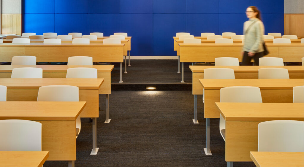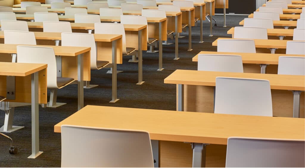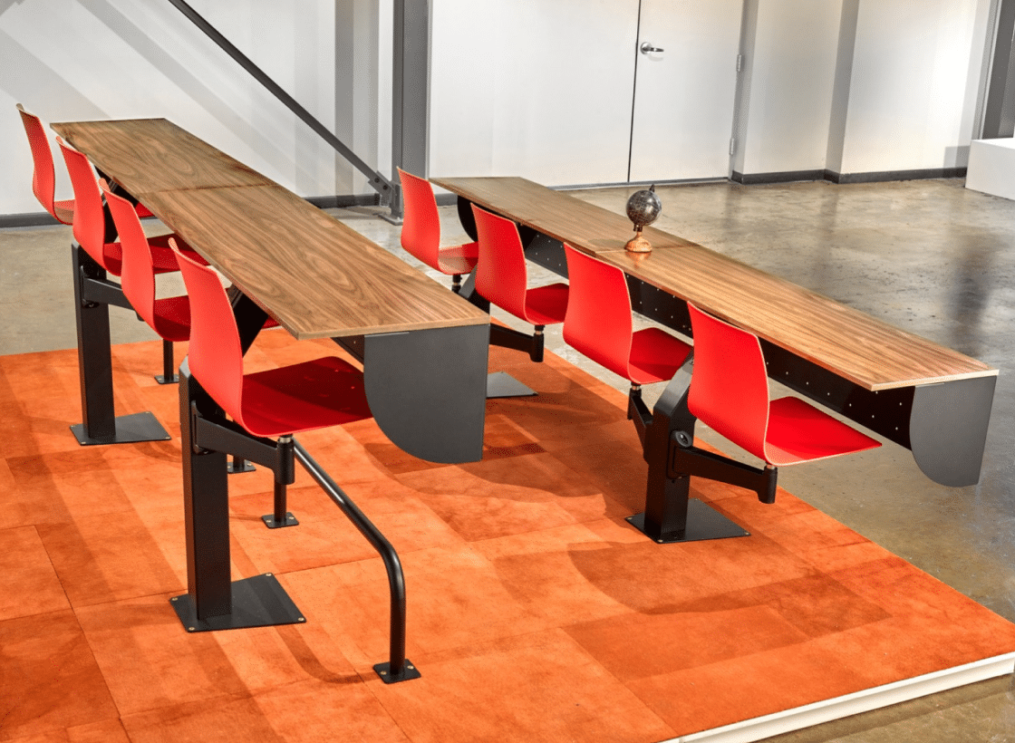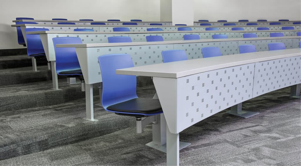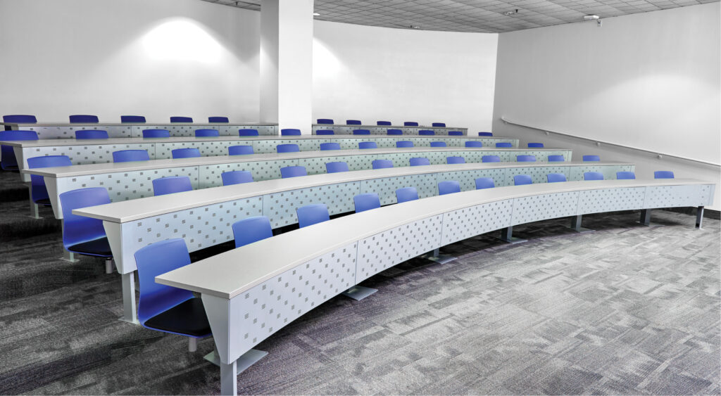 Rota is a fixed table with swing-away seat system that provides a wide range of options to meet flat, sloped, and tiered installations for straight or curved applications. This system offers an integrated solution that promotes collaborative learning environments. Ideal for today’s higher education and corporate learning environments, Rota provides flexibility to ensure the design is configured to best suit the space.