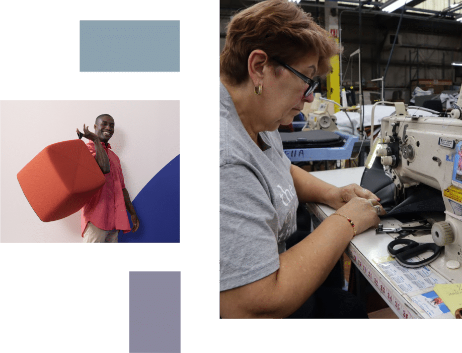 We are dedicated to using responsible materials in our manufacturing. For instance, we use water-based adhesives that are better for indoor air quality and safer for our manufacturing team.